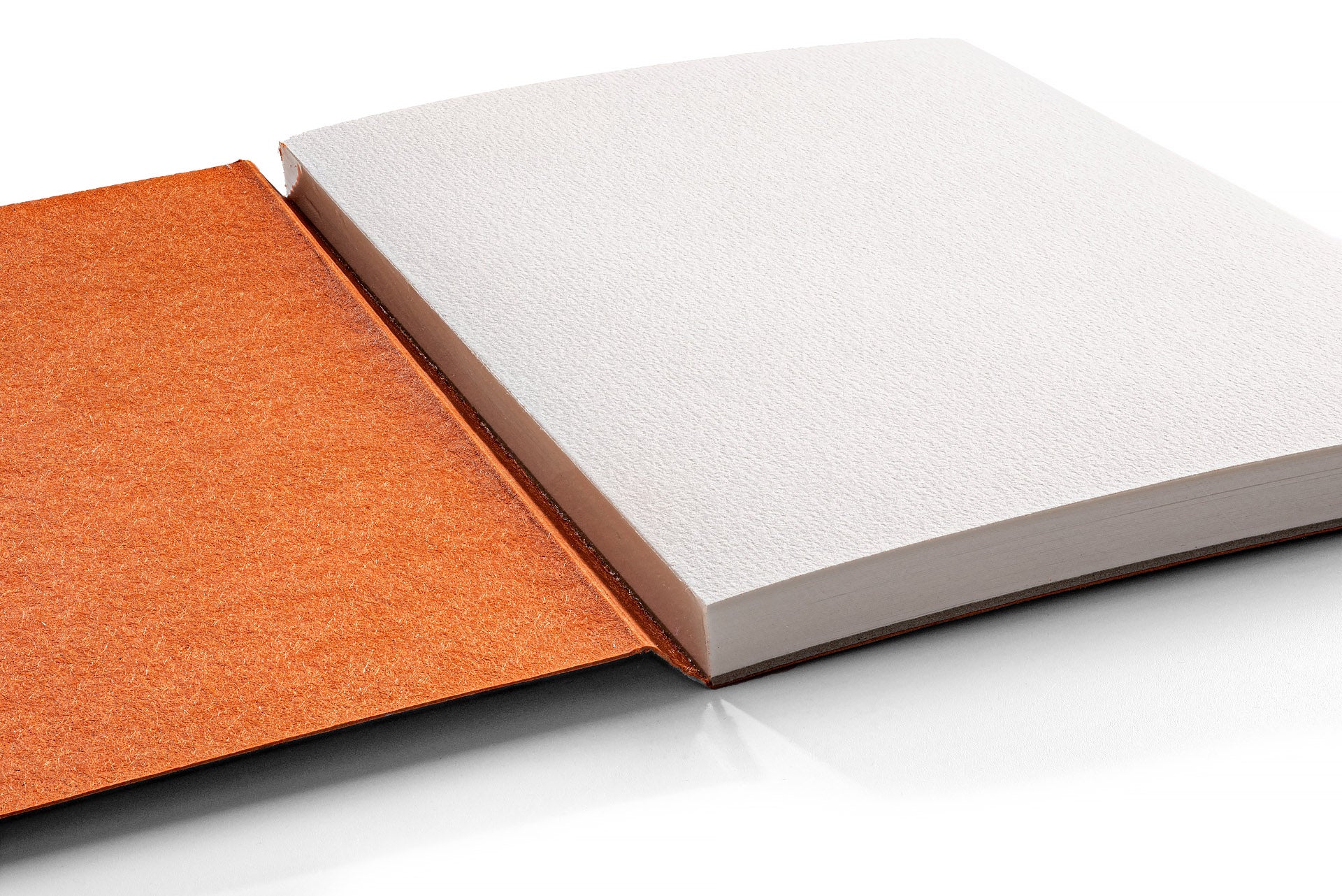 Baltas, vidutinio šiurkštumo, šalto presavimo universalus popierius. Tinka tiek sausoms, tiek drėgnoms piešimo technikoms. Vidinis popierius yra be rūgščių, pH neutralus, turi FSC sertifikatą. Su natūraliu spalvoto kartono viršeliu ir kieta nugarėle. Ilgoji kraštinė klijuota.