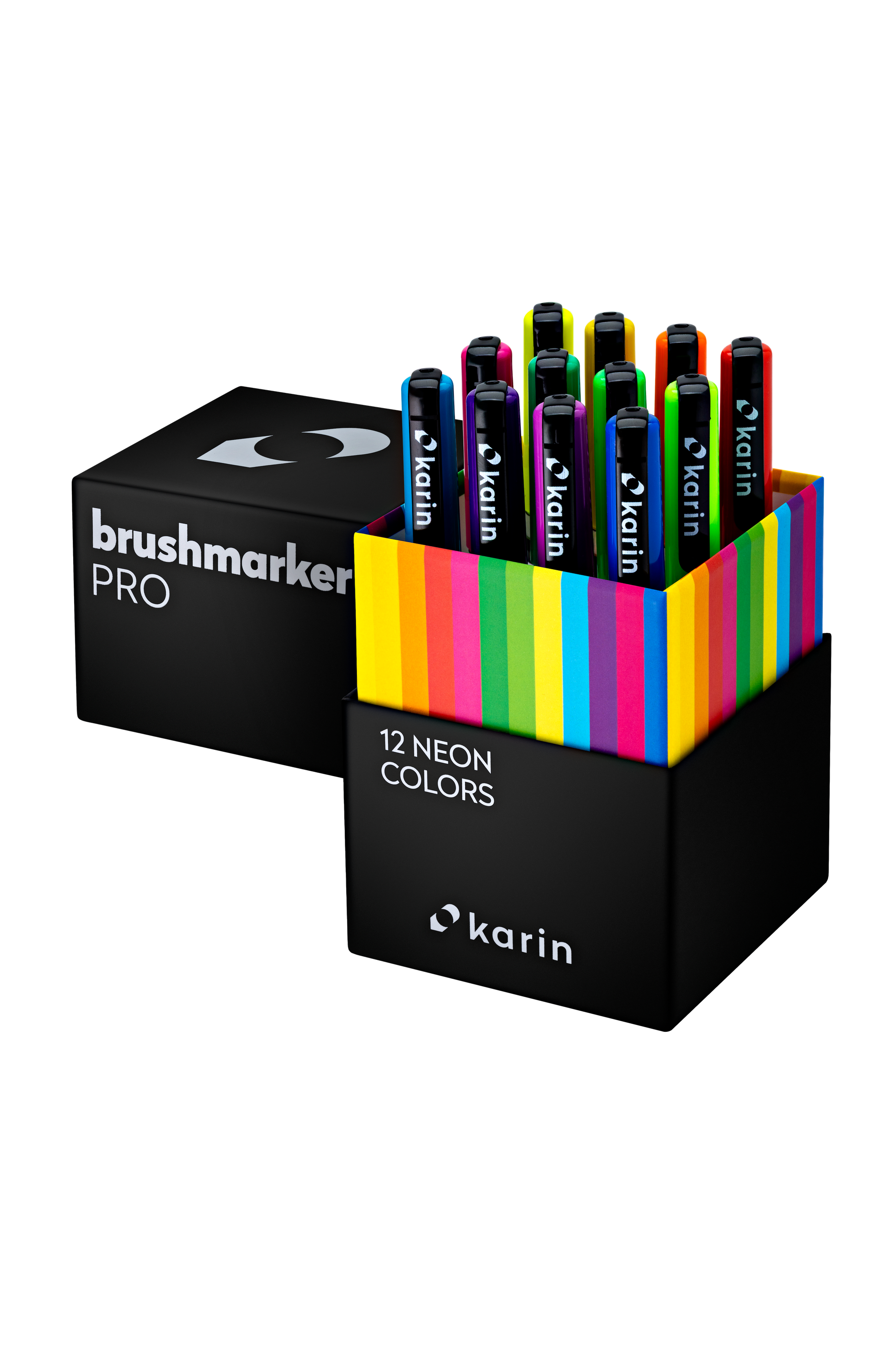 Karin Brushmarker PRO 12 vnt. neoninių markerių rinkinys dėžutėje